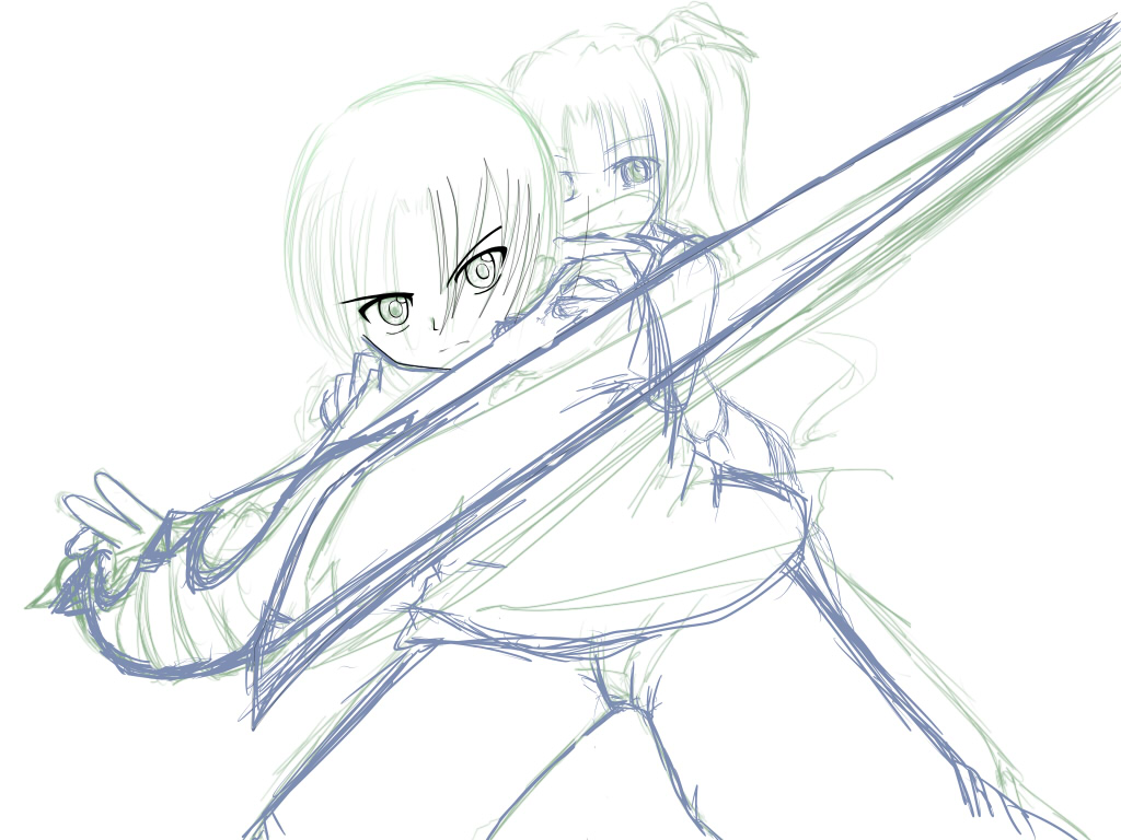 ラフを更にラフで覆ってみて、感じを更に明確にしてから線画に取り掛かる。